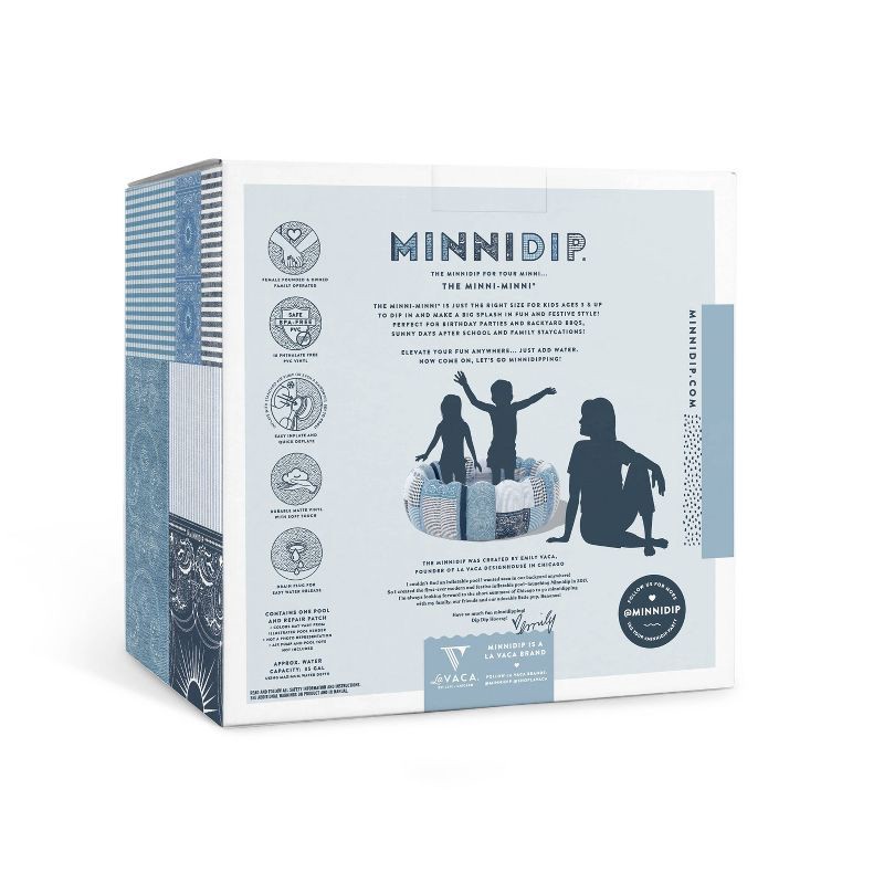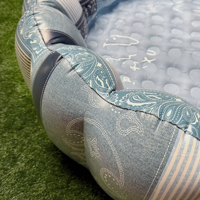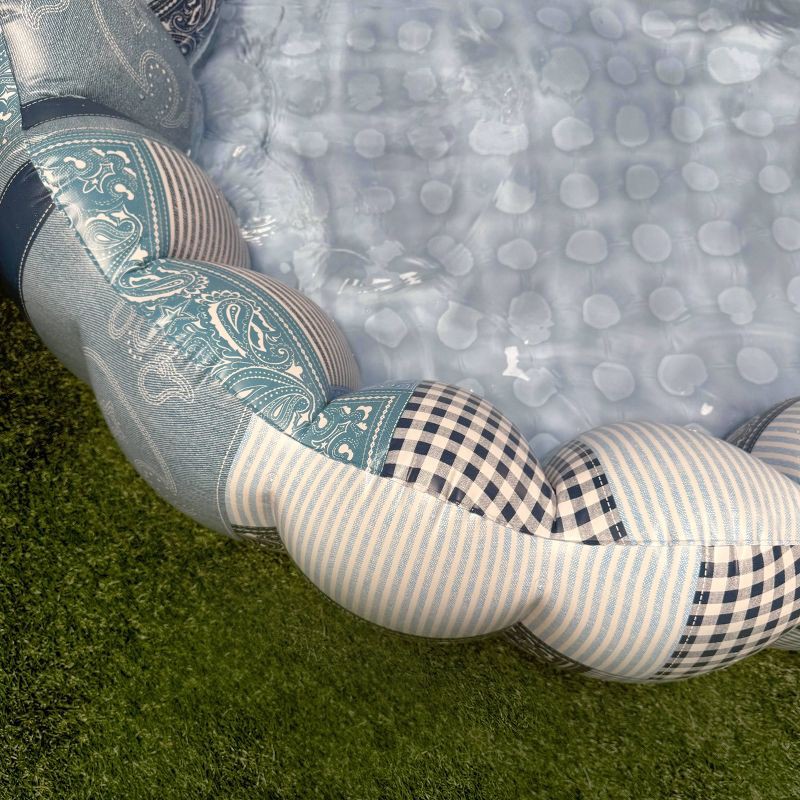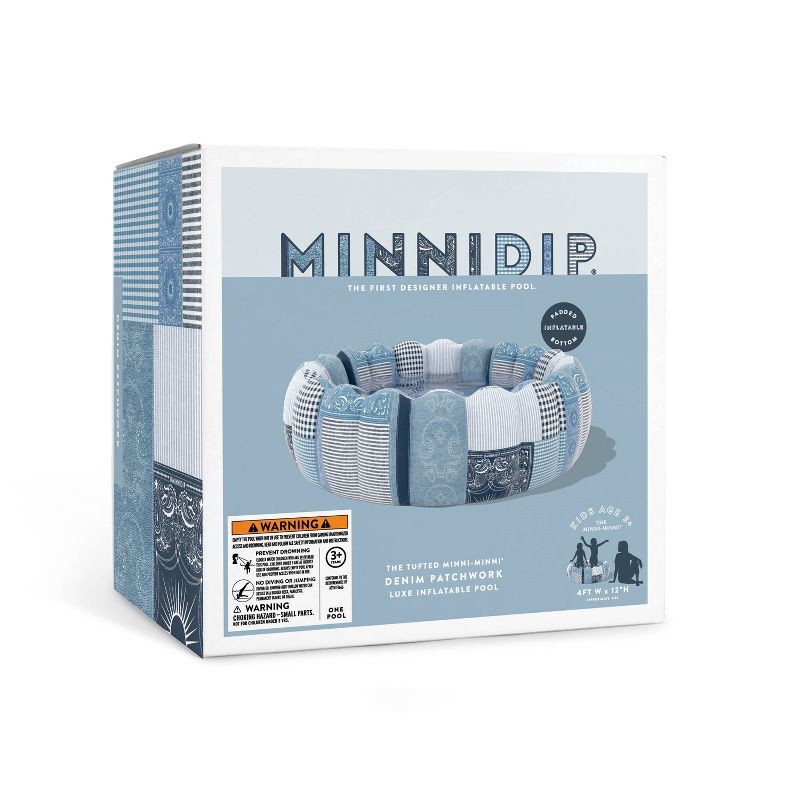 The Minnidip for your minni—the Minni-Minni! Designed in Chicago by Emily Vaca of La Vaca, the Tufted Minni-Minni DENIM PATCHWORK Luxe Inflatable Pool turns your backyard into a western-inspired desti…