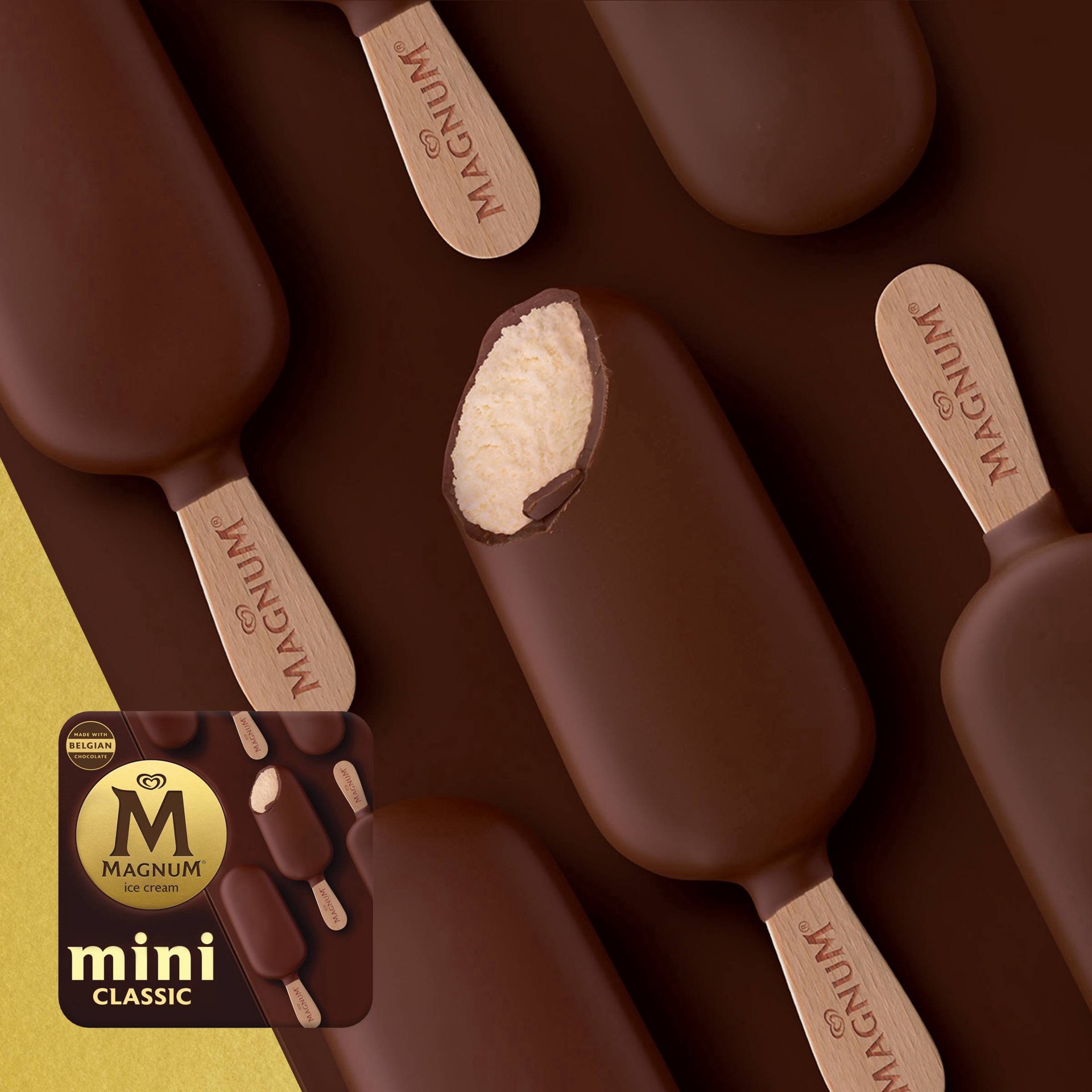 - Magnum Classic Mini Ice Cream Bars are made with vanilla ice cream dipped in milk chocolate.