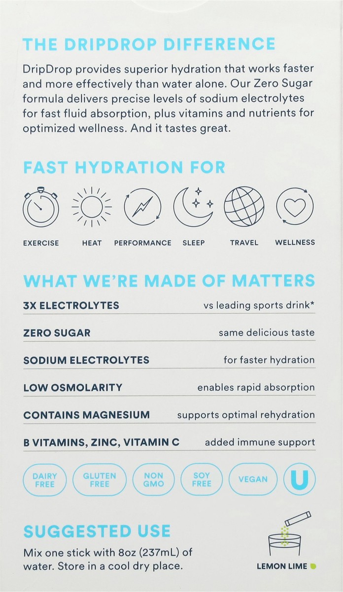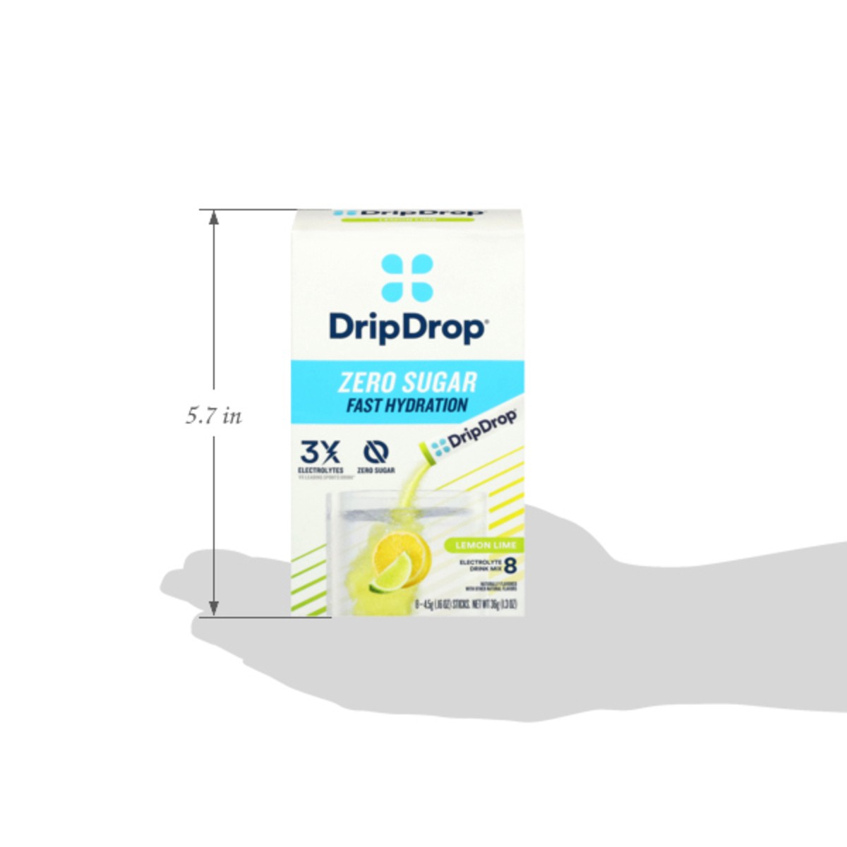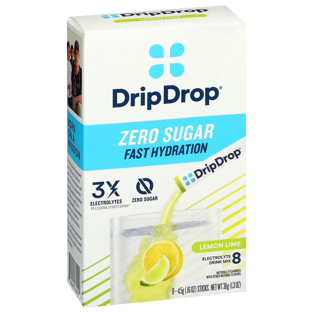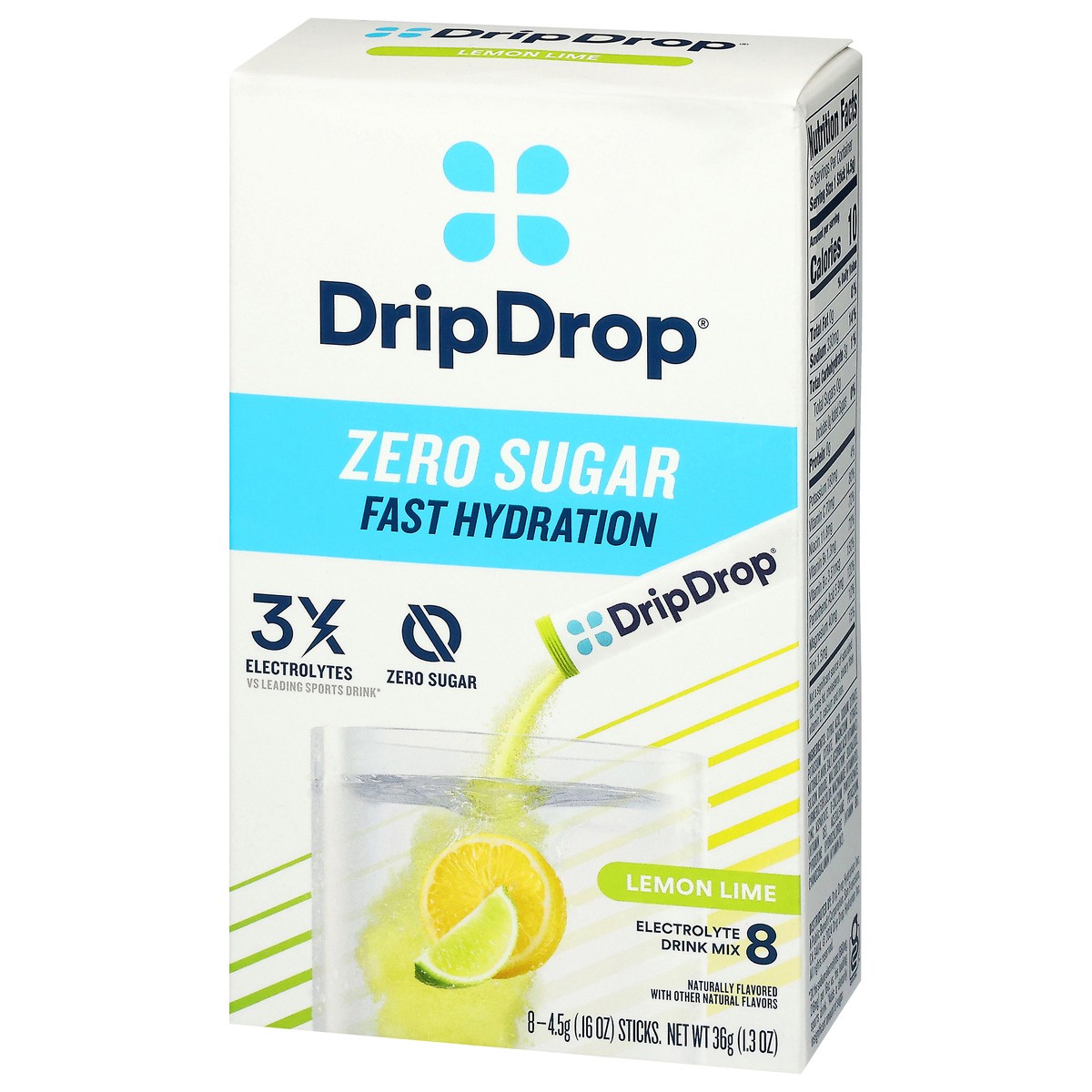 DripDrop Zero Sugar Fast Hydration Lemon Lime Electrolyte Drink Mix - 8 x 0.16 oz Sticks