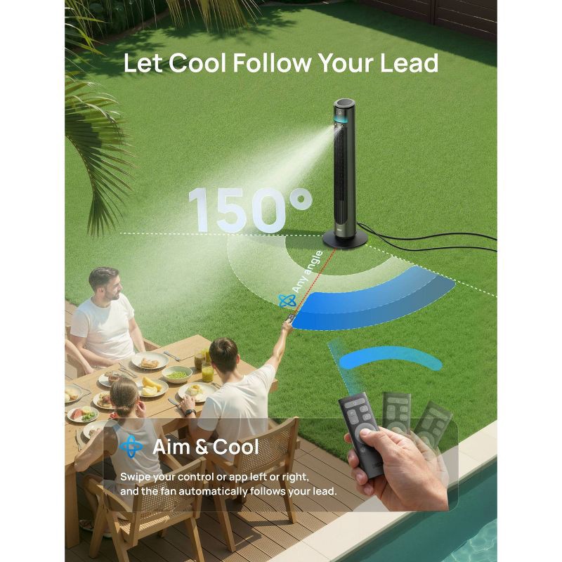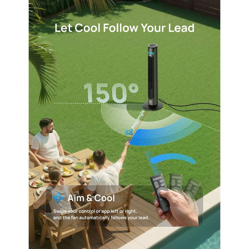 - MotionSync™ 150° Panoramic Oscillation: Wide, smooth sweep that spreads cooling across the whole area—so everyone gets the breeze, not just the person in front.
