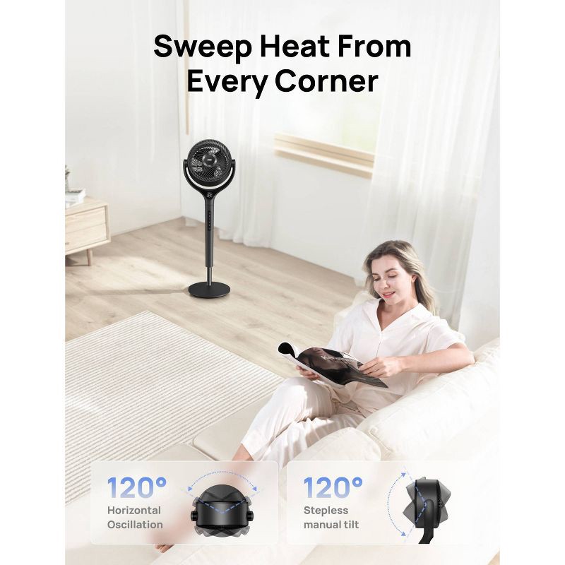 - 120° Ultra-Wide Oscillation & 120° Stepless Tilt: Wide horizontal oscillation spreads airflow across more of the room, while stepless tilt lets you aim air precisely where you want it. This combination creates more uniform coverage for shared spaces. One fan, flexible airflow control.