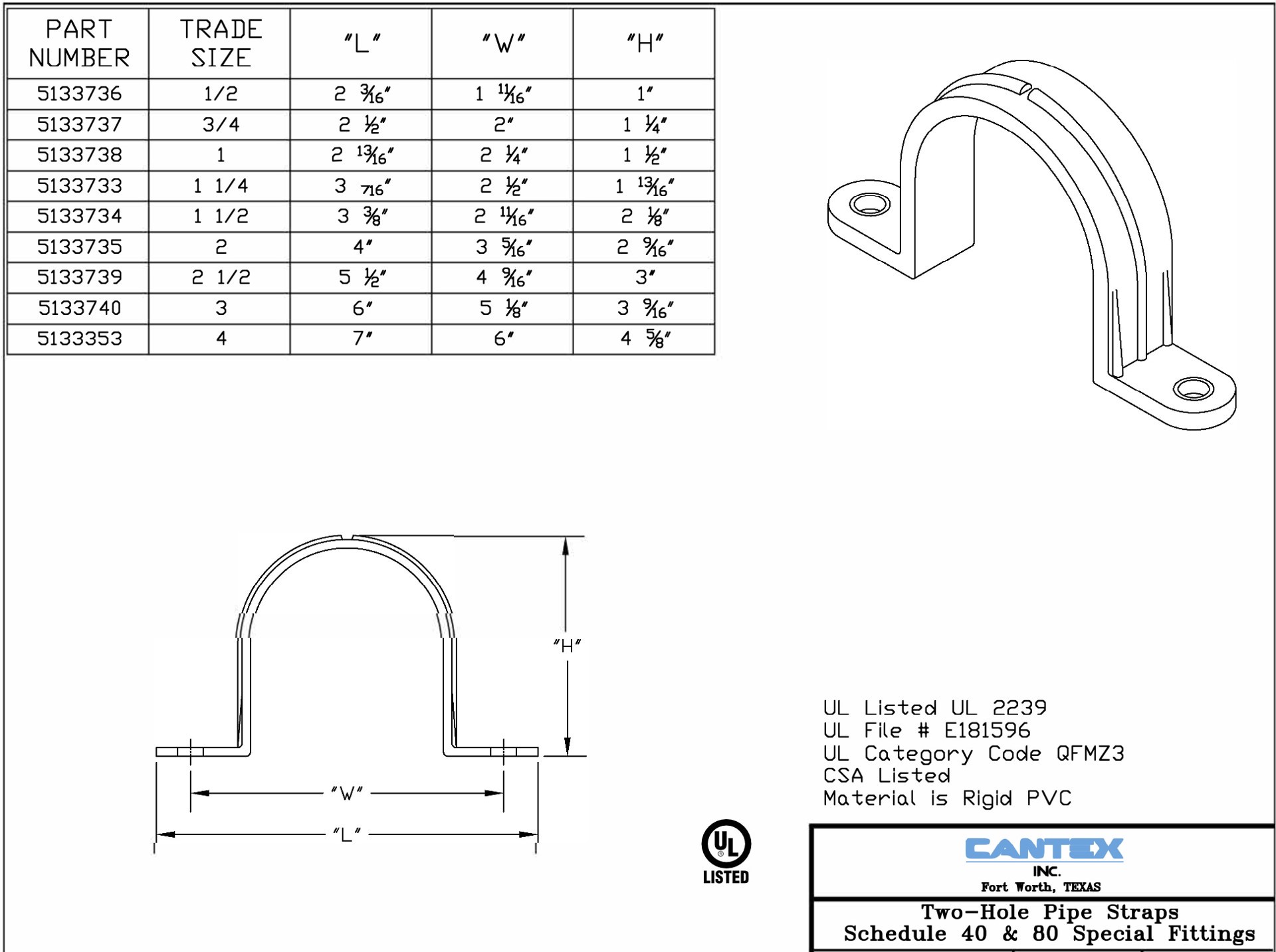 CANTEX 1/2-in Schedule 40, Schedule 80 PVC Combination Strap Conduit Fittings