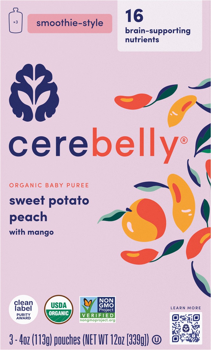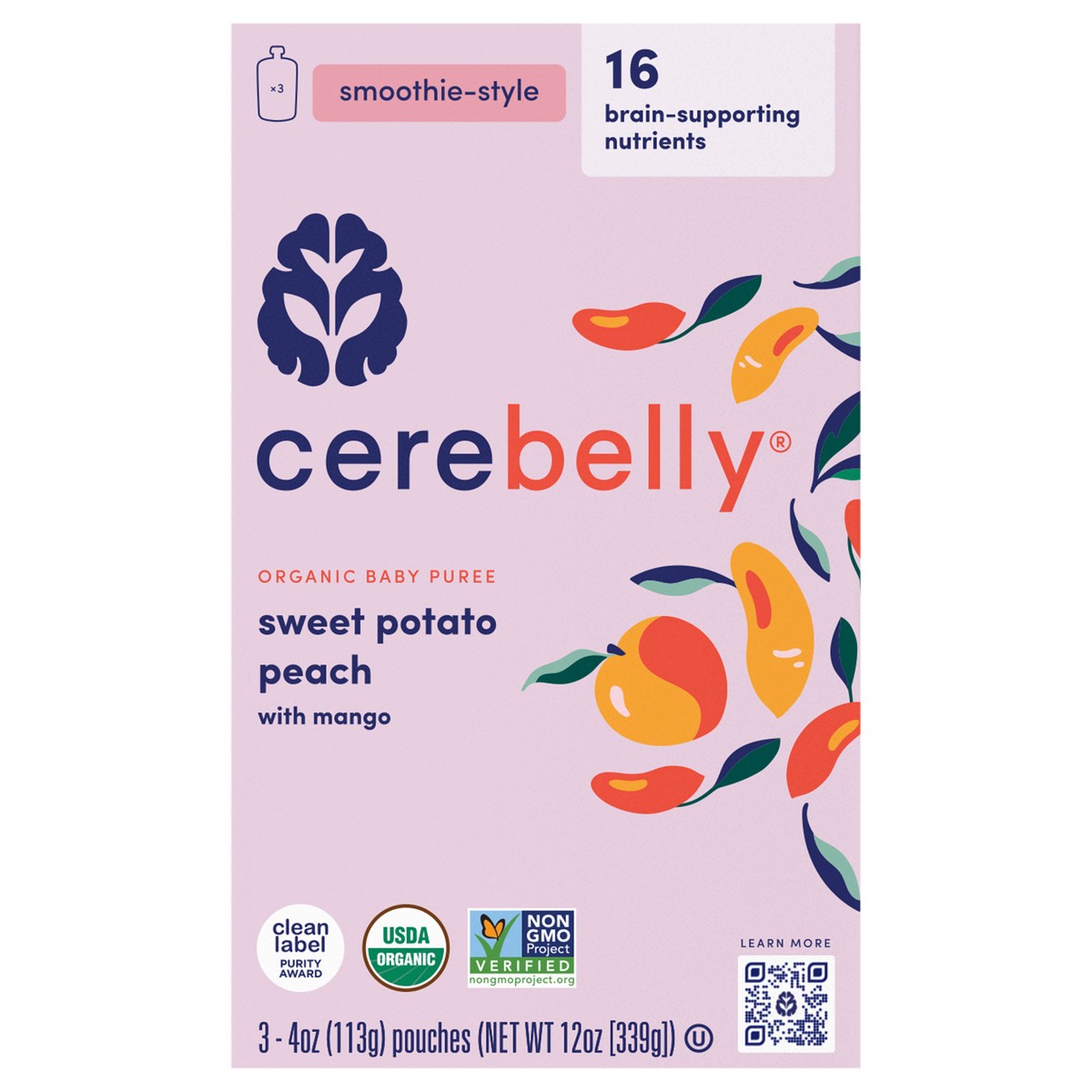 Cerebelly Organic Sweet Potato Peach Mango Smoothie - 3 Pack