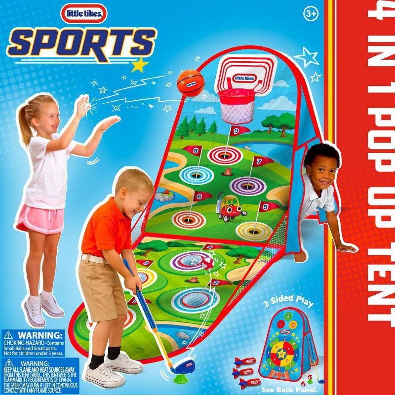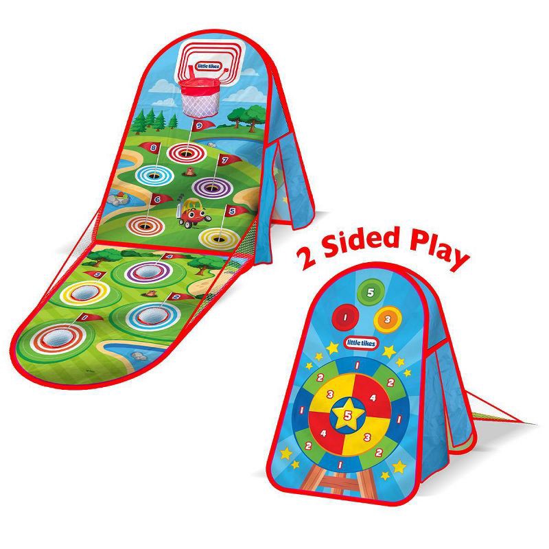 - Features 4 fun ways to play: golf, darts, basketball, and tent play