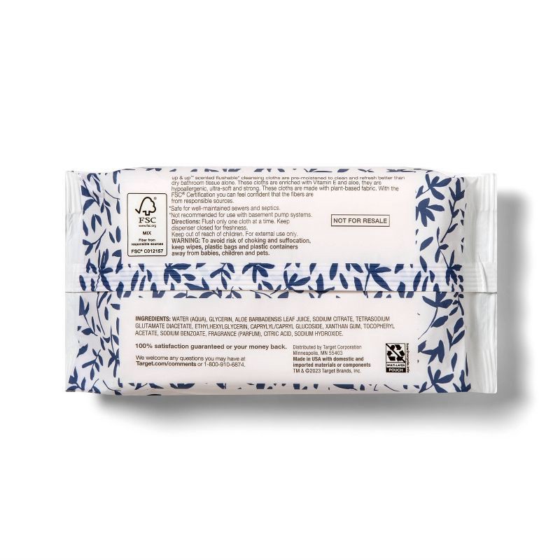 up & up™ scented flushable cleansing clothes are pre-moistened to clean and refresh better than dry bathroom tissue alone. In fact, they are proven to wipe away dirt and germs. These cloths are made w…