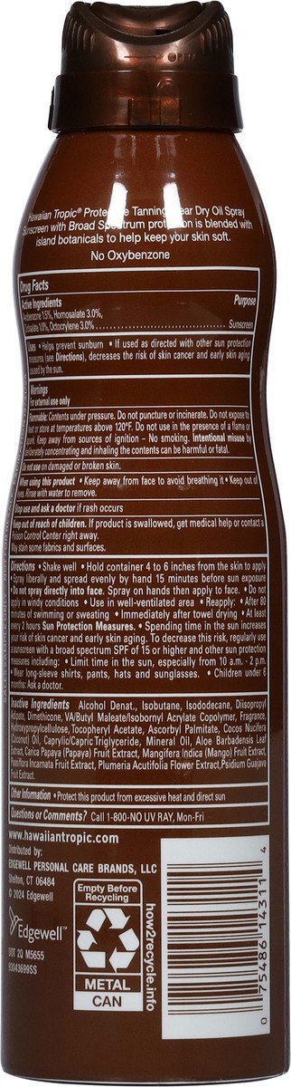 Hawaiian Tropic Protective Tanning Broad Spectrum SPF 15 Sunscreen Dry Oil Spray 6.0 oz