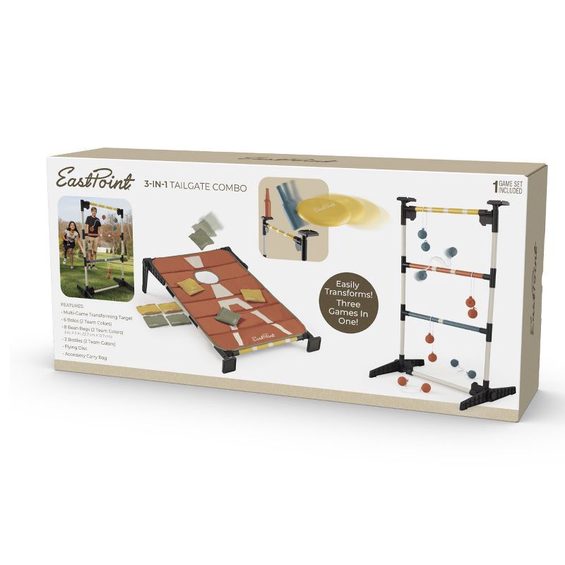 Get ready for ultimate outdoor entertainment with the EastPoint 3-in-1 Tailgate Combo Game Set, featuring Cornhole, Ladderball, and Bottle Smash all in one transforming target. Perfect for tailgates, …