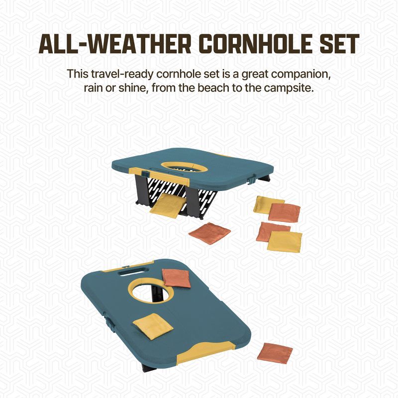 - All-Weather Cornhole Boards for Outdoor Play – Durable boards are built to withstand backyard games, tailgates, camping trips, and more.