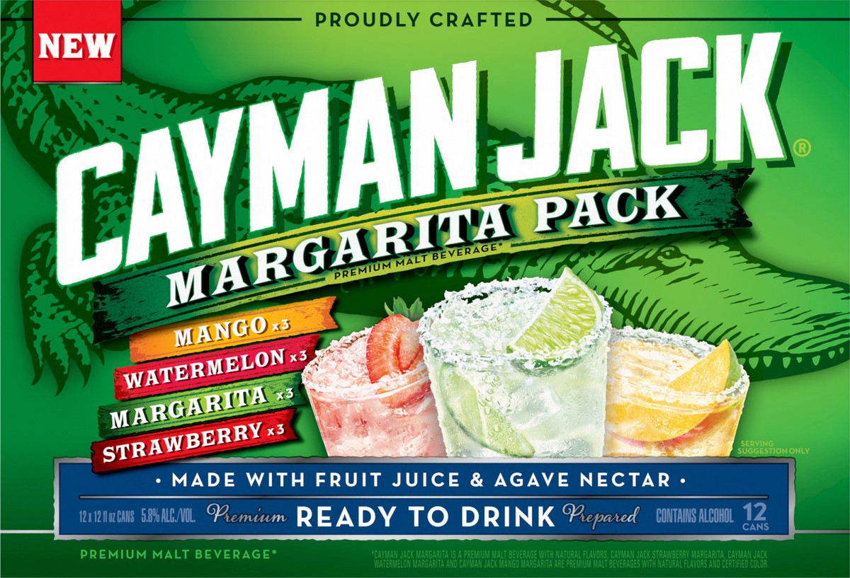 Cayman Jack Margarita Variety Pack offers four refreshing, pre-made margarita flavors: Margarita (classic), Mango, Watermelon, and Strawberry. Made with premium ingredients and 5.8% ABV, Cayman Jack m…