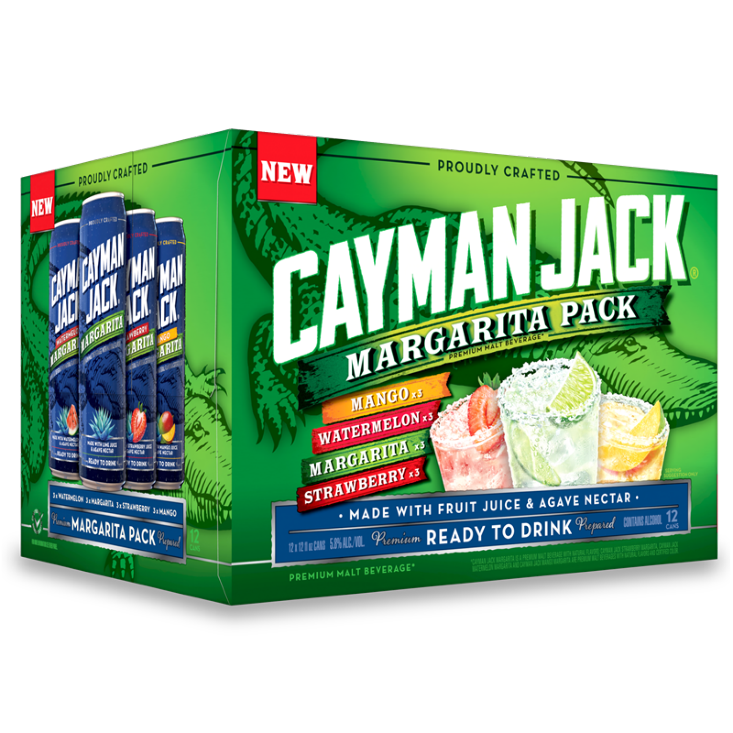 Cayman Jack Margarita Variety Pack offers four refreshing, pre-made margarita flavors: Margarita (classic), Mango, Watermelon, and Strawberry. Made with premium ingredients and 5.8% ABV, Cayman Jack m…