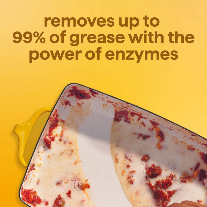 - POWERED BY ENZYMES: Removes up to 99% of grease, with less scrubs and more suds