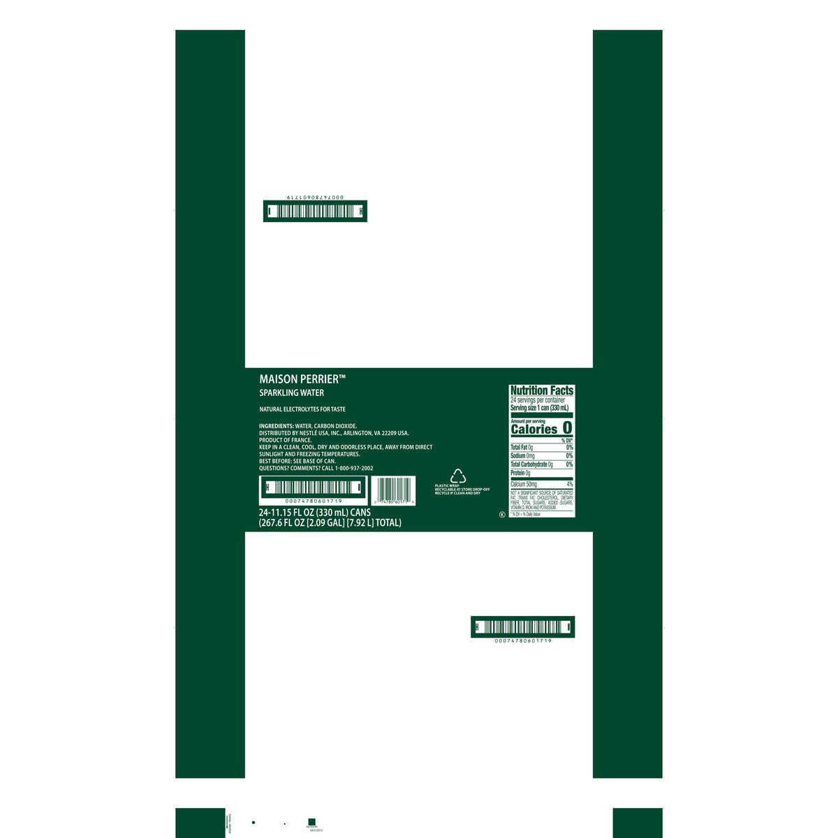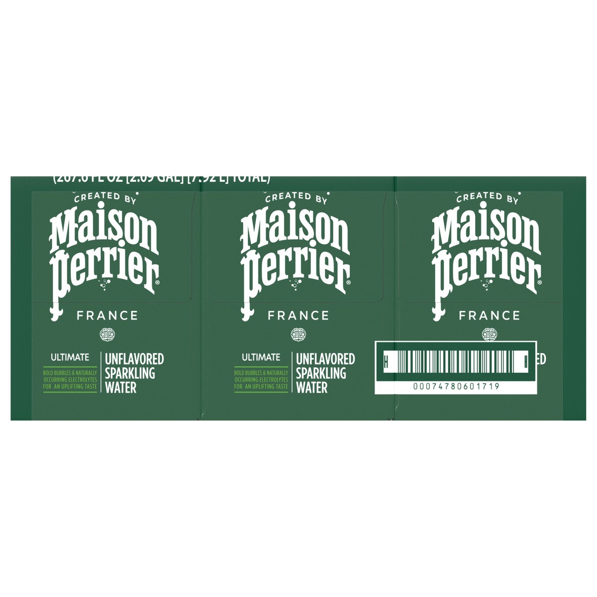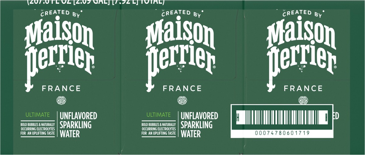 - Three packs of eight 11.15 fl oz cans of Maison Perrier Ultimate Unflavored Sparkling Water with natural electrolytes for taste