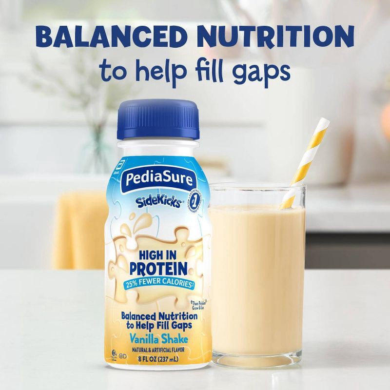 PediaSure SideKicks nutrition shakes have balanced nutrition to help fill the top 4 nutrient gaps. Each protein shake has 10g of protein, 27 essential vitamins & minerals, and 3g of fiber* for kids wh…