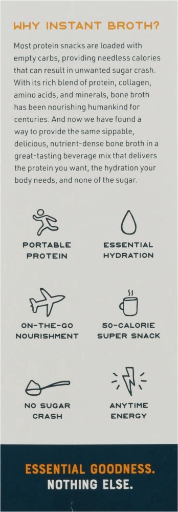 Our Chicken Instant Bone Broth has a light, refreshing flavor that makes it the perfect addition to any lunch box, office desk, post-workout regimen or on-the-go lifestyle. These perfectly portable "r…