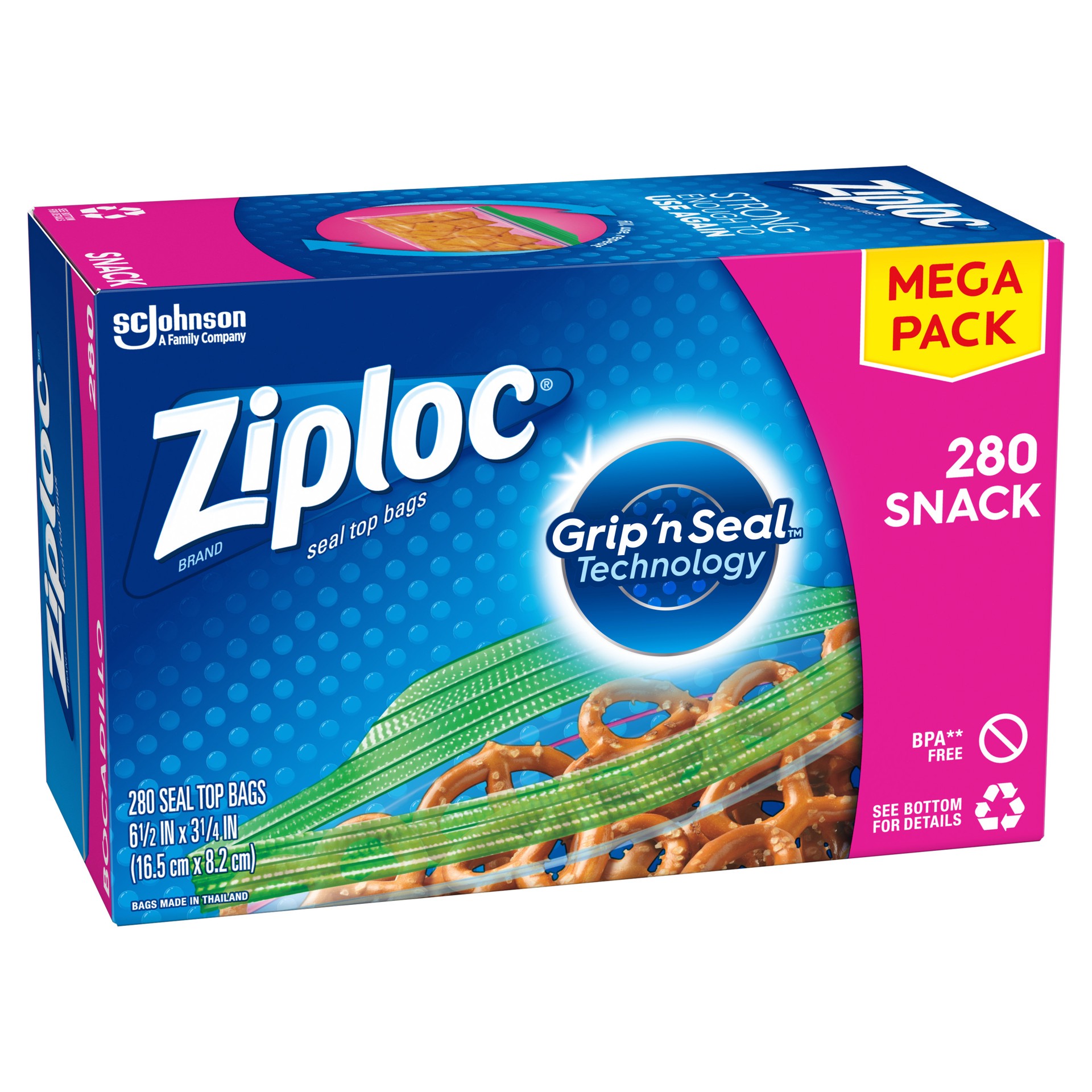 - Includes 280 snack sized Ziploc bags made of durable BPA-free plastic to keep your family stocked up and snacked up