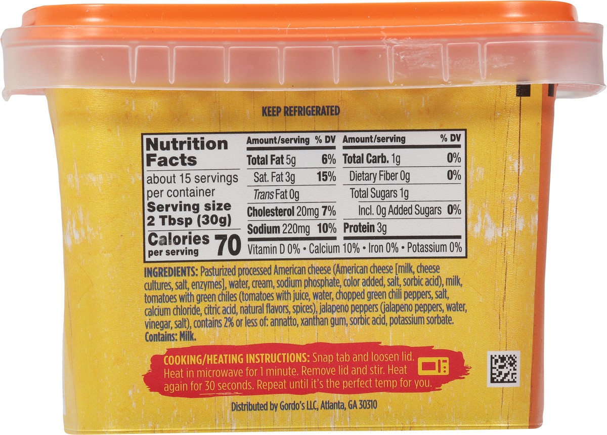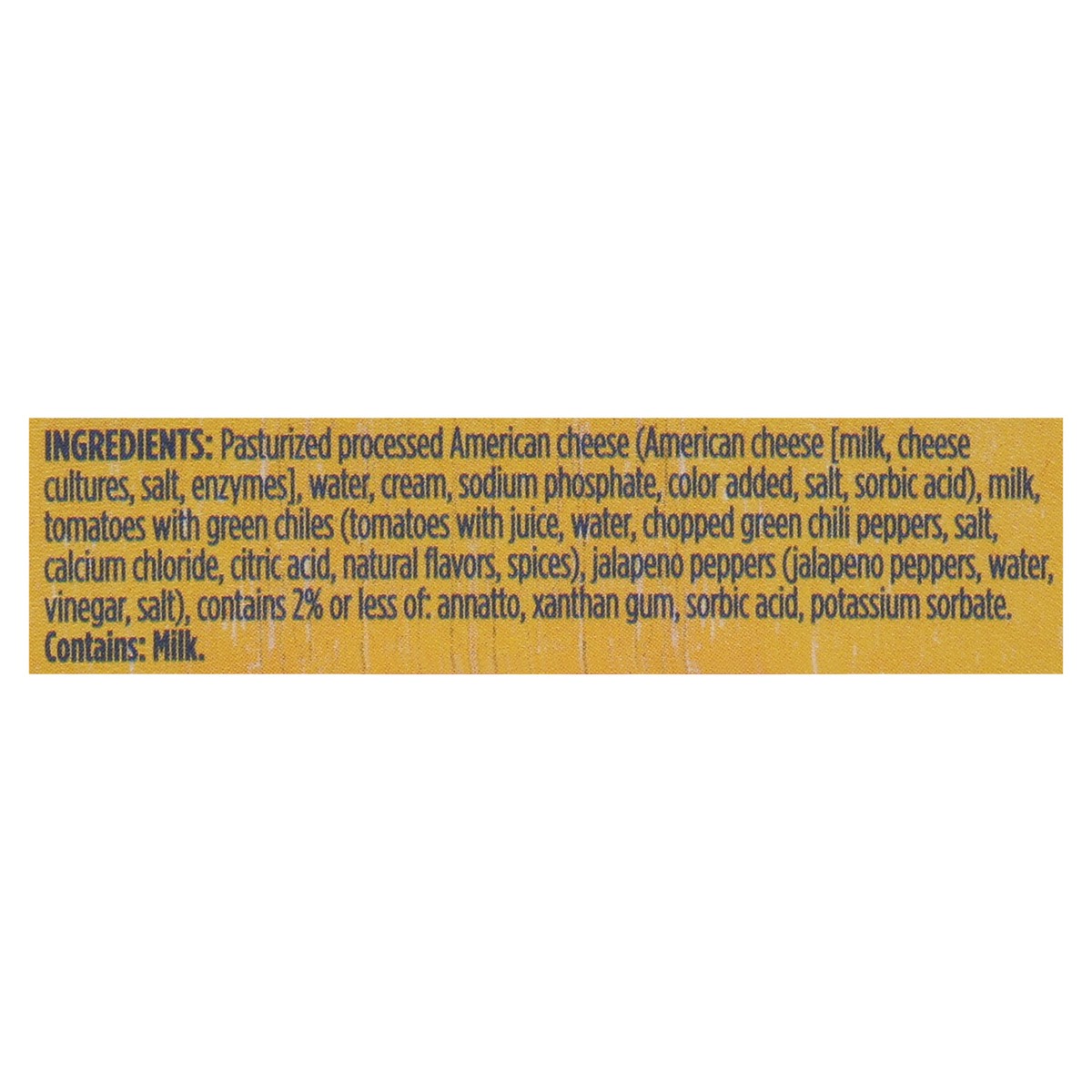 Pasturized Processed American Cheese (American Cheese [Milk, Cheese Cultures, Salt, Enzymes], Water, Cream, Sodium Phosphate, Color Added, Salt, Sorbic Acid), Milk, Tomatoes with Green Chiles (Tomatoe…