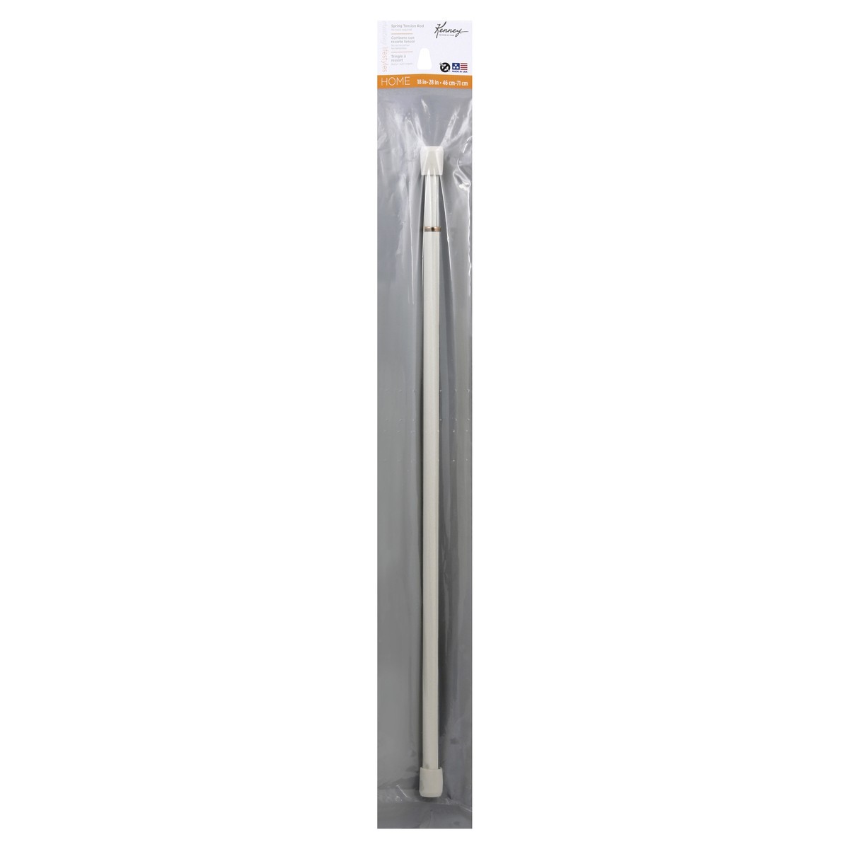 18 in - 28 in (46 cm - 71 cm). For over 100 years. No tools required. Creating lifestyles. Home. 7/16 inch diameter. www.kenney.com. Made in USA. Made in the USA with imported parts.