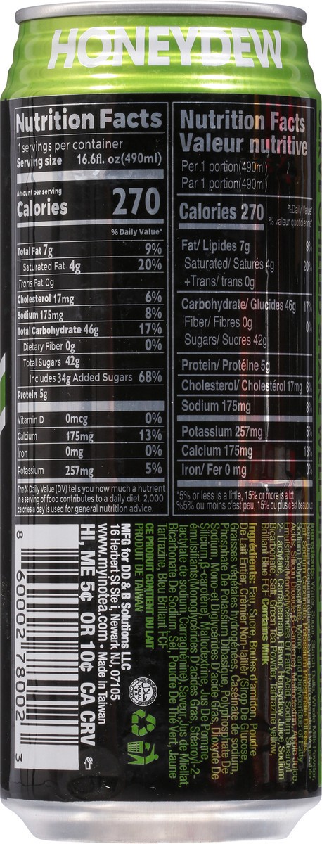 Inotea Honeydew Bubble Tea Can - 16.6 Oz