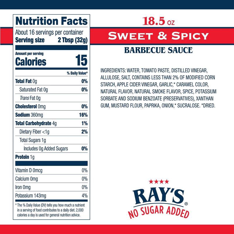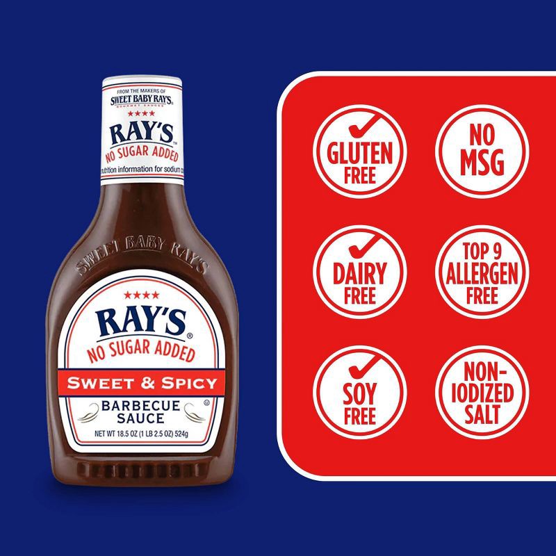 Ray's No Sugar Added® Sweet & Spicy Barbecue Sauce delivers a bold, balanced barbecue flavor with just the right one-two punch of sweet and heat — all with no added sugar. Brush it onto ribs, slather …