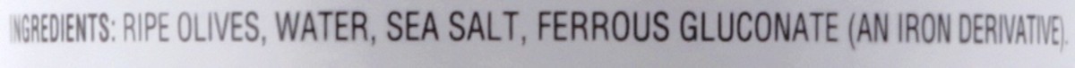 Ripe Olives, Water, Sea Salt, Ferrous Gluconate (an Iron Derivate).