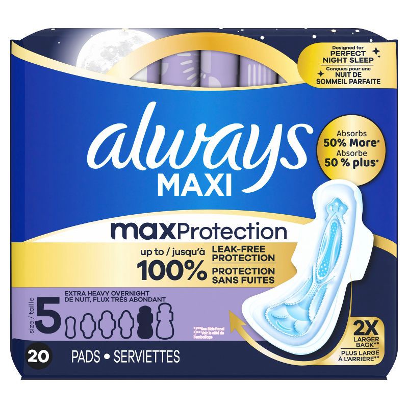 Always Maxi Extra Heavy Overnight Pads with Wings - Size 5 - 20ct