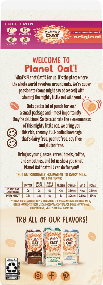 Planet Oat Unsweetened Original Oatmilk - 52 Oz