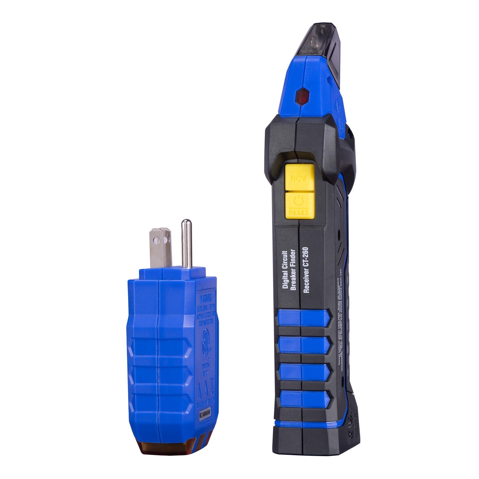 Locates correct circuit breaker, Built-in NCV tester. Standalone receptacle tester with GFCI test. Transmitter docks in receiver for convenient storage.