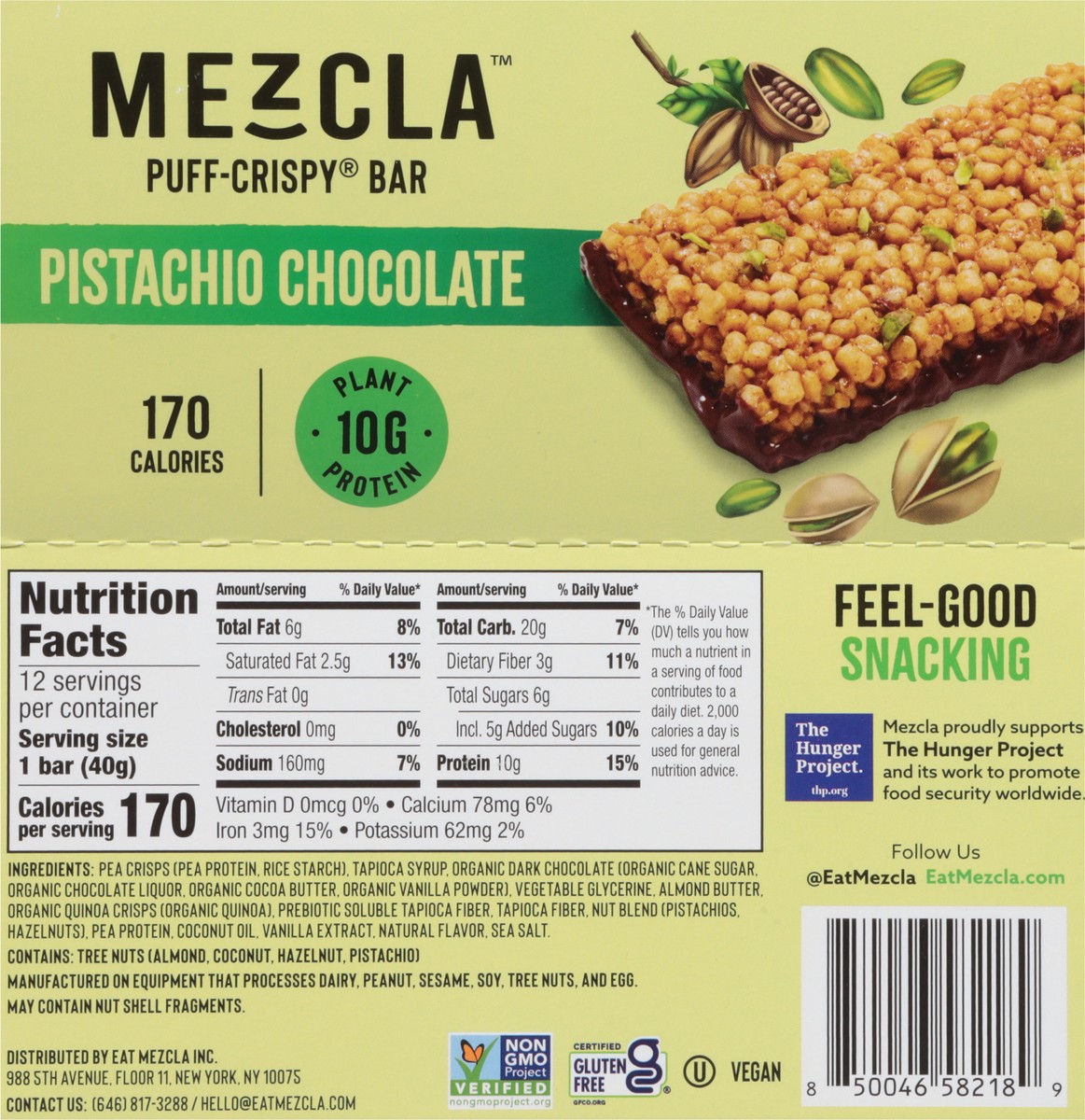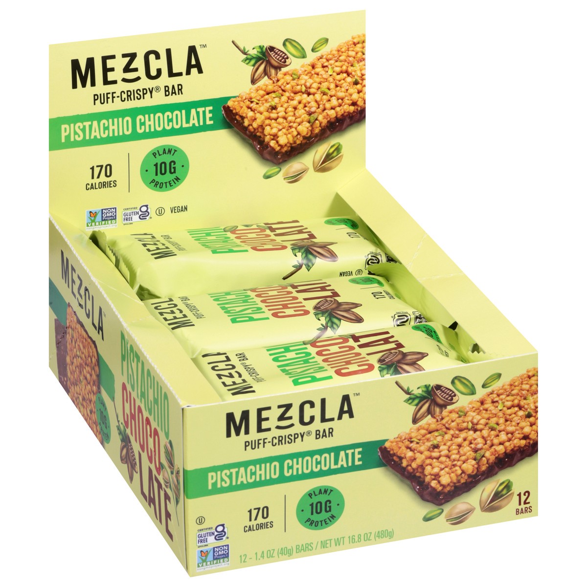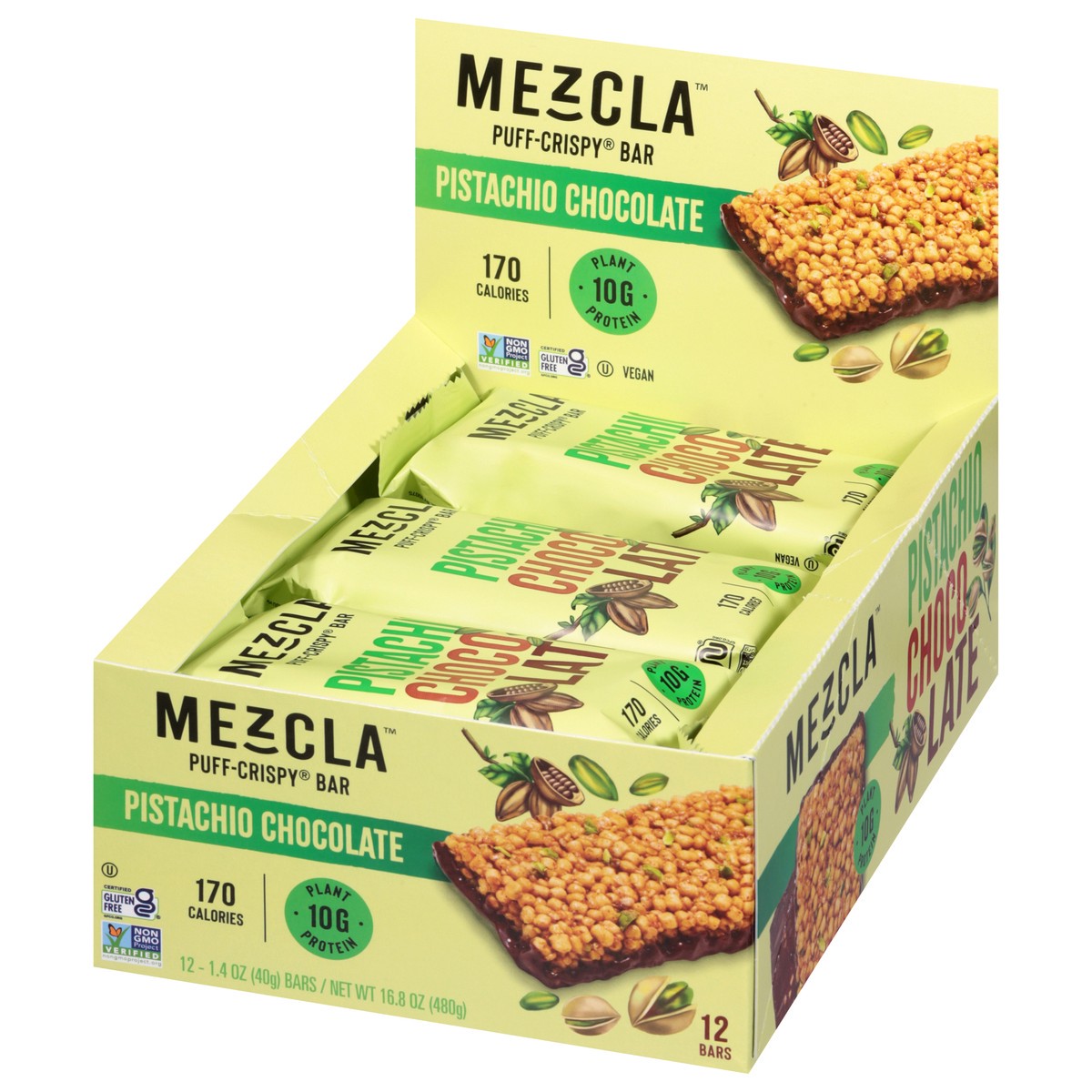 Mezcla Pistachio Chocolate Puff-Crispy Protein Bar - 12 ct