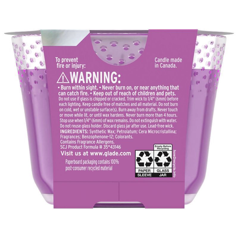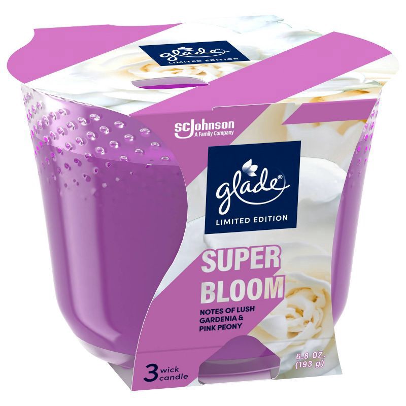 Express your aura when you light this Glade 3 wick candle made with Limited Edition Super Bloom fragrances. Release your creative energy through the rich aromas of a candle made with fragrances infuse…