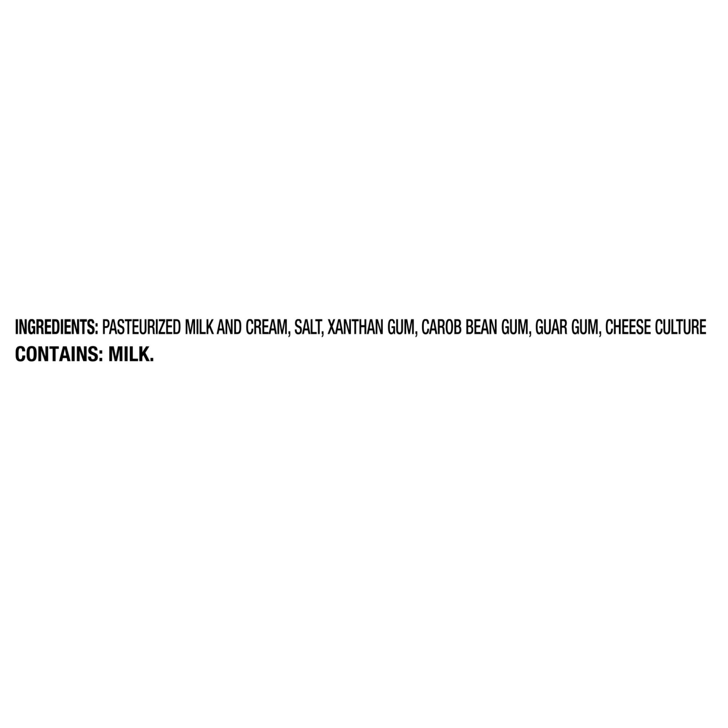 Pasteurized Milk and Cream, Salt, Xanthan Gum, Carob Bean Gum, Guar Gum, Cheese Culture.