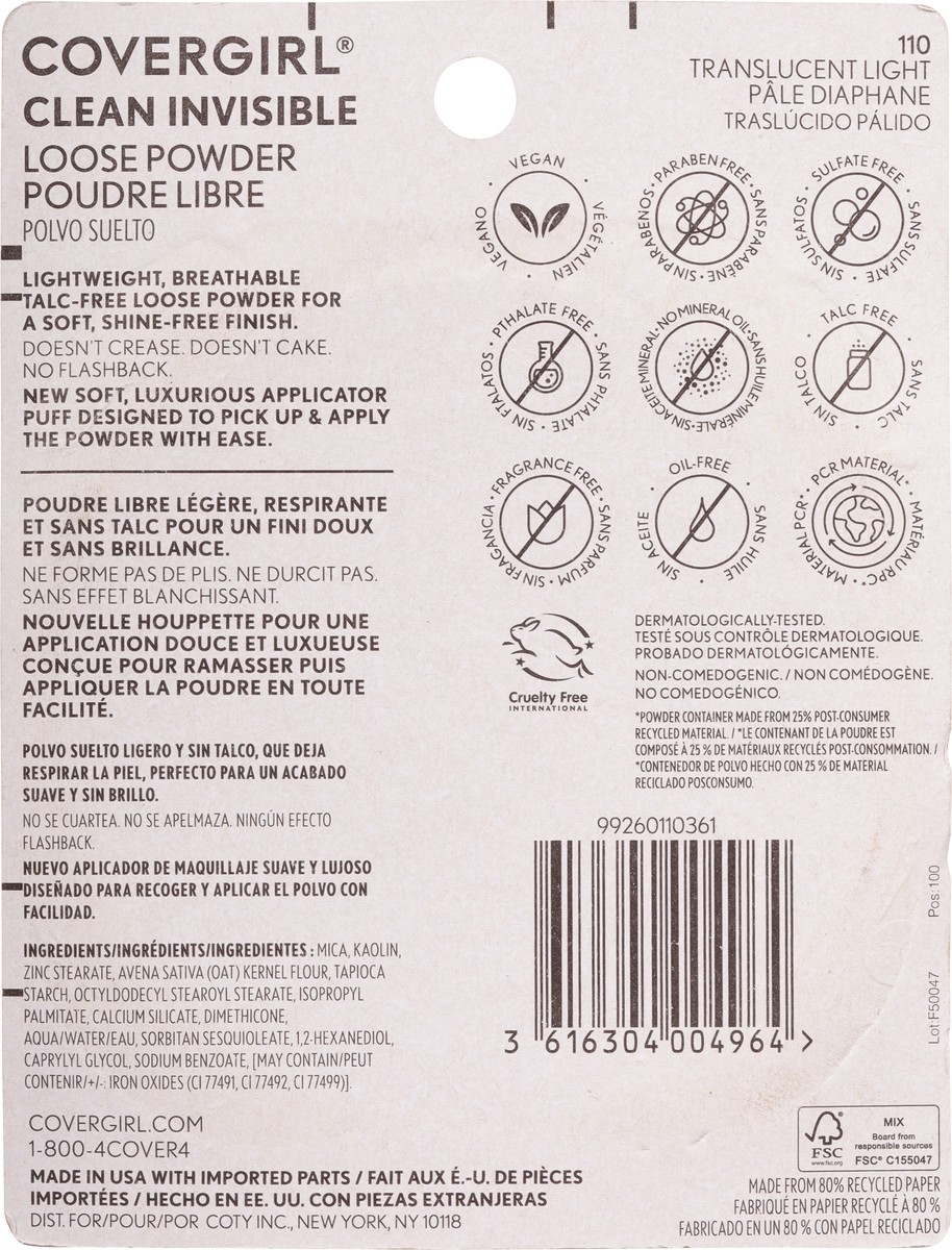 CoverGirl Clean Invisible Loose Powder - Translucent Light 110, 0.63 oz