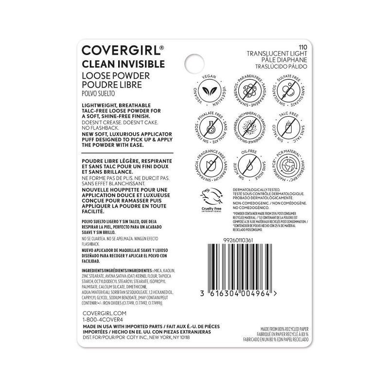 COVERGIRL Clean Invisible Loose Powder - Translucent Light - 0.63oz: Paraben-Free, Noncomedogenic, Vegan, All Skin Types