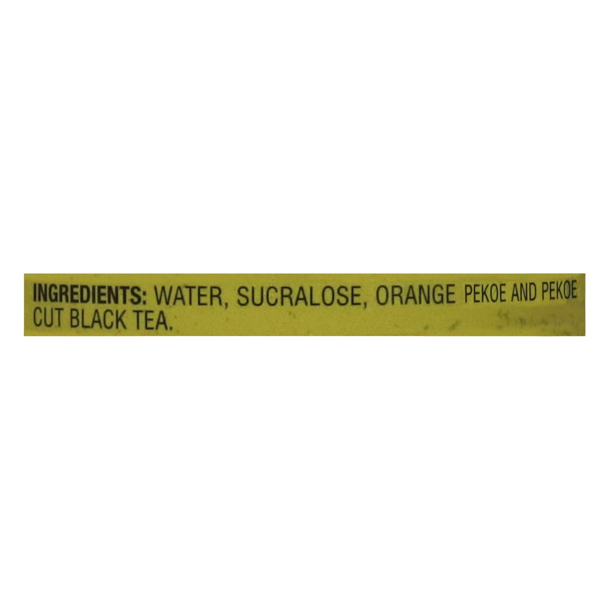 Water, Sucralose, Orange Pekoe and Pekoe Cut Black Tea.