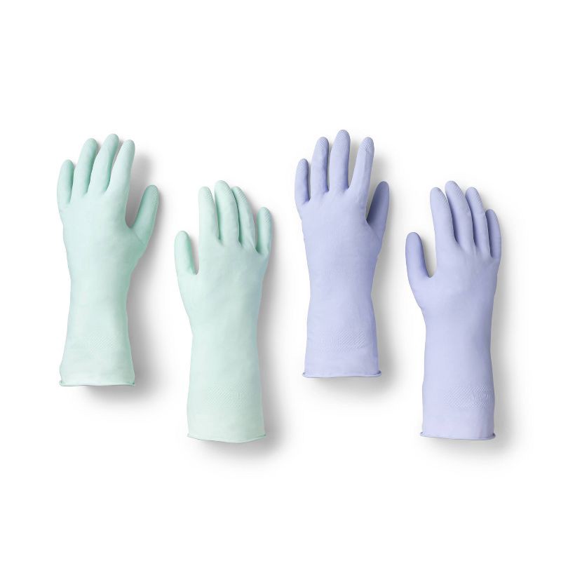 Tackle even the messiest of chores hassle-free with these Reusable Double Pack Latex Gloves from Smartly™. This pack features two pairs of size medium latex gloves. They're reusable for continued conv…