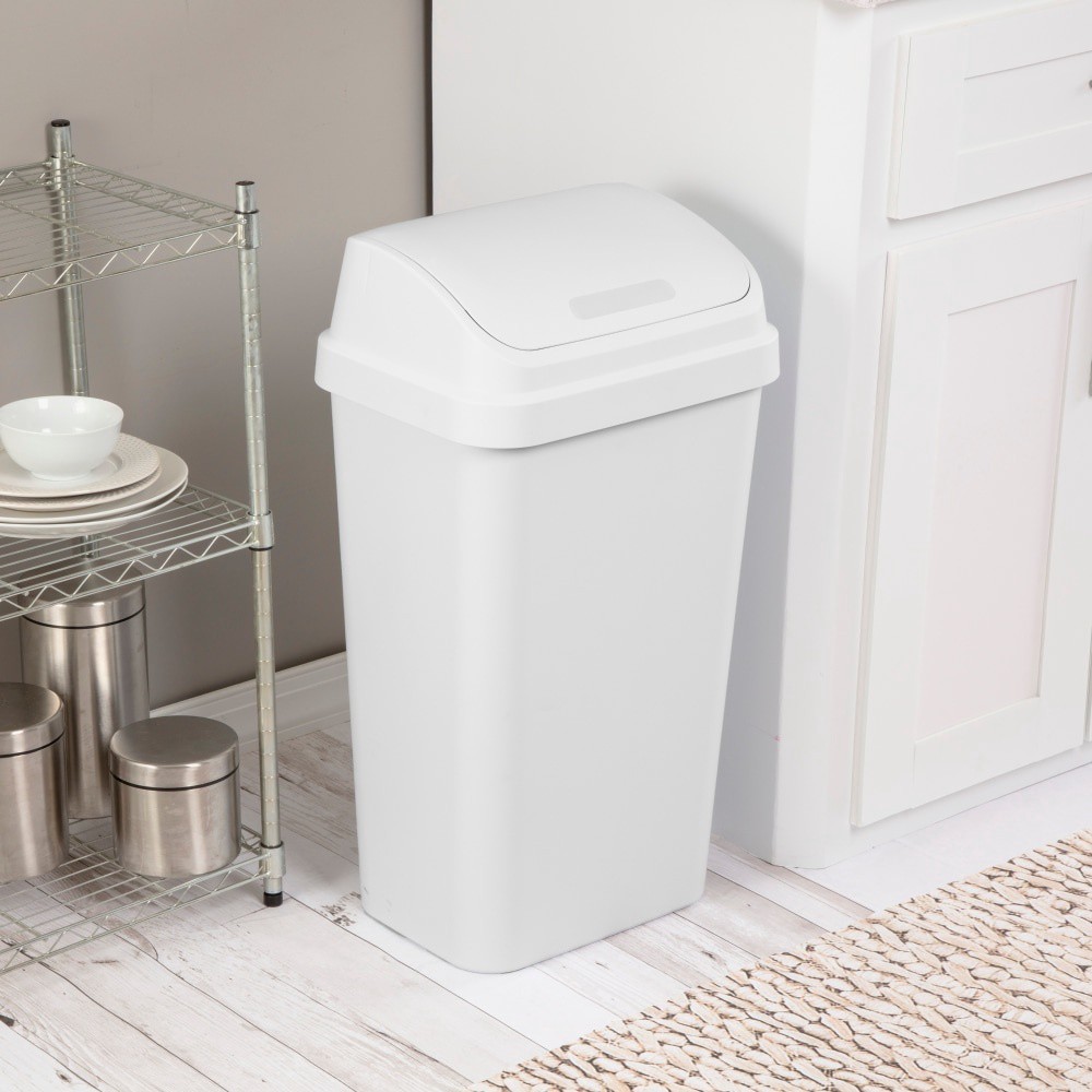 Keep your trash hidden away with this wastebasket that has a swingtop lid