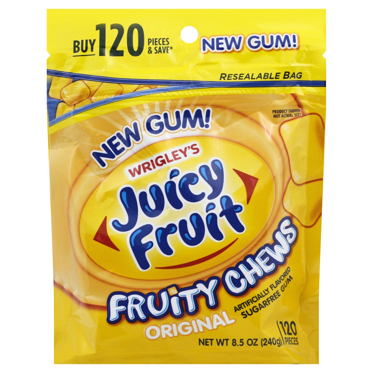 - Package includes Juicy Fruit Original Fruity Chews Sugarfree Gum 120-Piece BagJuicy Fruit Original gum has a one-of-a-kind