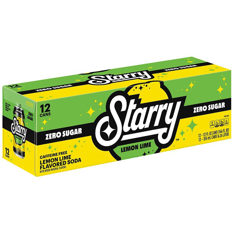 Try the NEW Starry Zero Sugar Lemon Lime soda with a crisp, clear burst of lemon lime flavor. This caffeine-free soda is the perfect addition to your everyday routine, whether you have it with a meal …