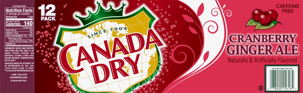 Canada Dry Cranberry Ginger Ale - 12-12 Fl. Oz.