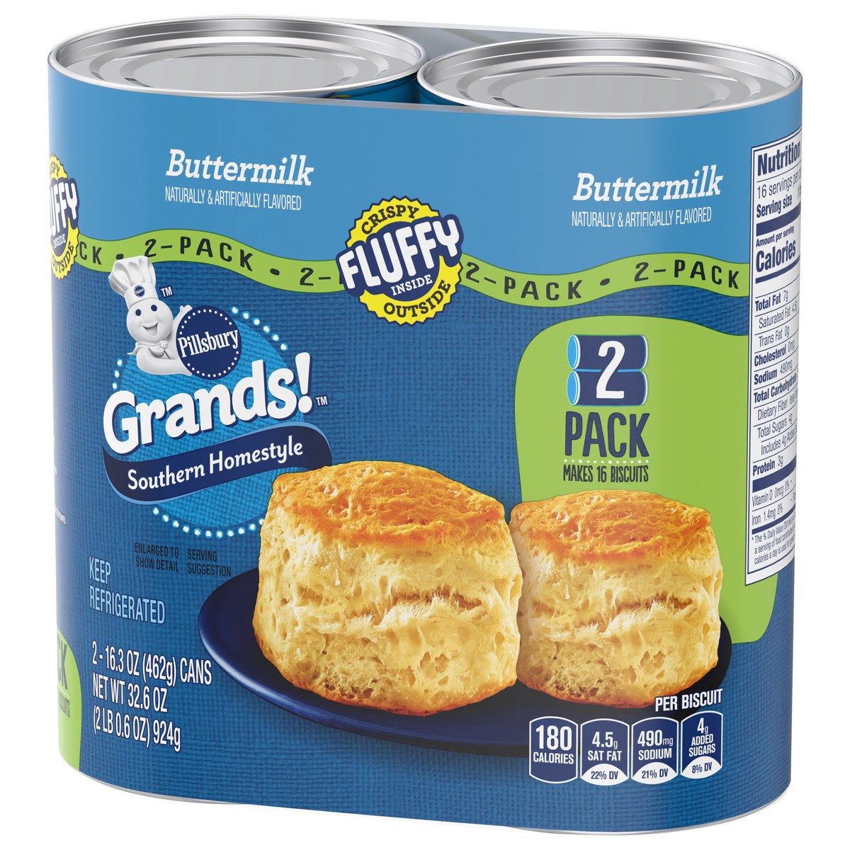Make weeknight dinner sides grand with the home-baked goodness of Pillsbury Grands! Southern Homestyle Buttermilk Biscuits, naturally and artificially flavored. Our tasty biscuits bake up bigger, comp…