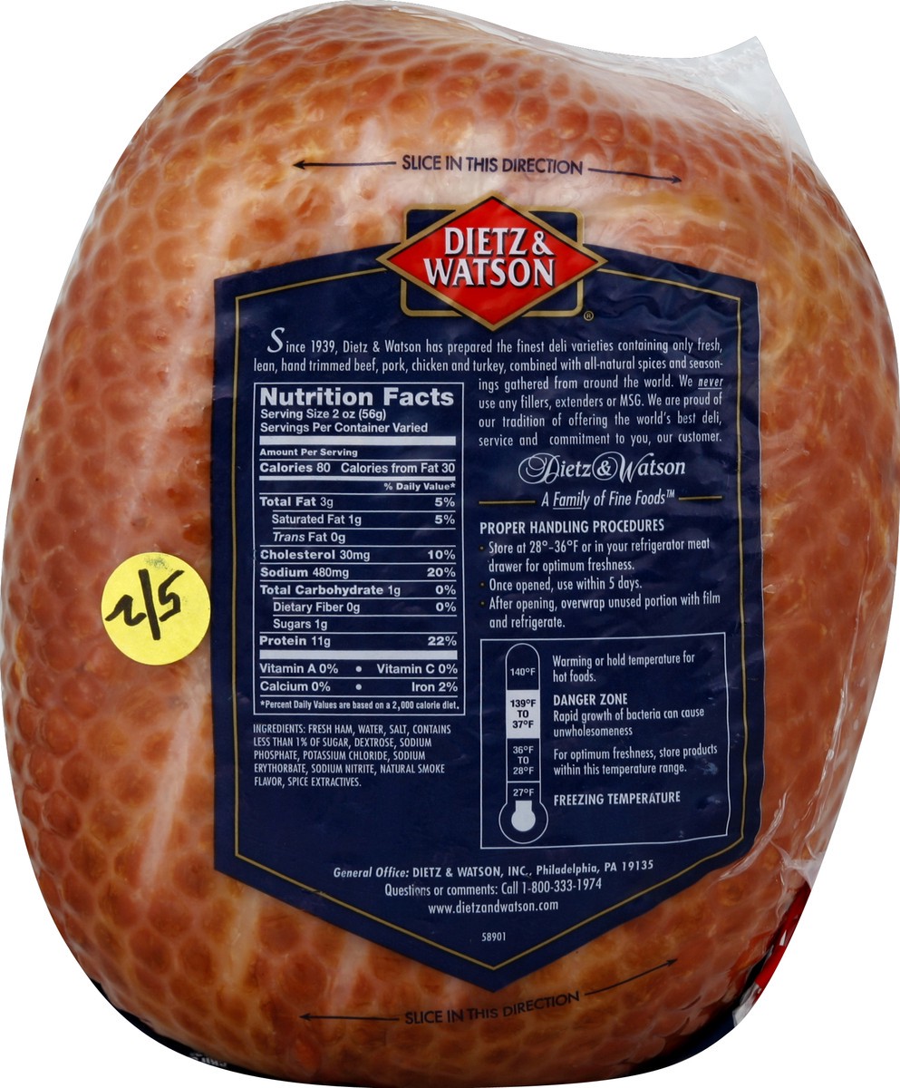 Satisfy your tastebuds with Dietz & Watson Black Forest Smoked Ham. Slow-roasted to perfection using whole muscle meats and a premium blend of all natural herbs and spices for a tender and flavorful b…