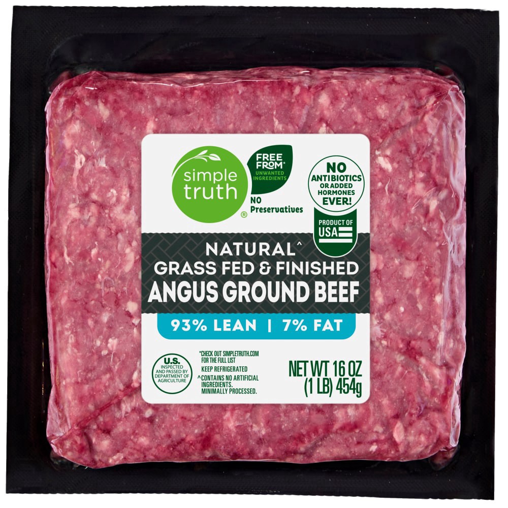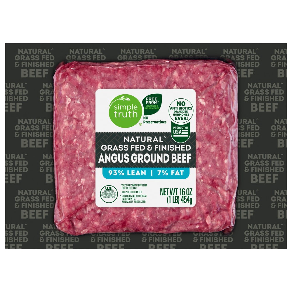 Simple Truth® 93/7 Naturalˆ Grass Fed Angus Ground Beef - 1 LB Pack promises to elevate your culinary creations! This USDA organic ground beef is grass fed and contains no preservatives, antibiotics, …