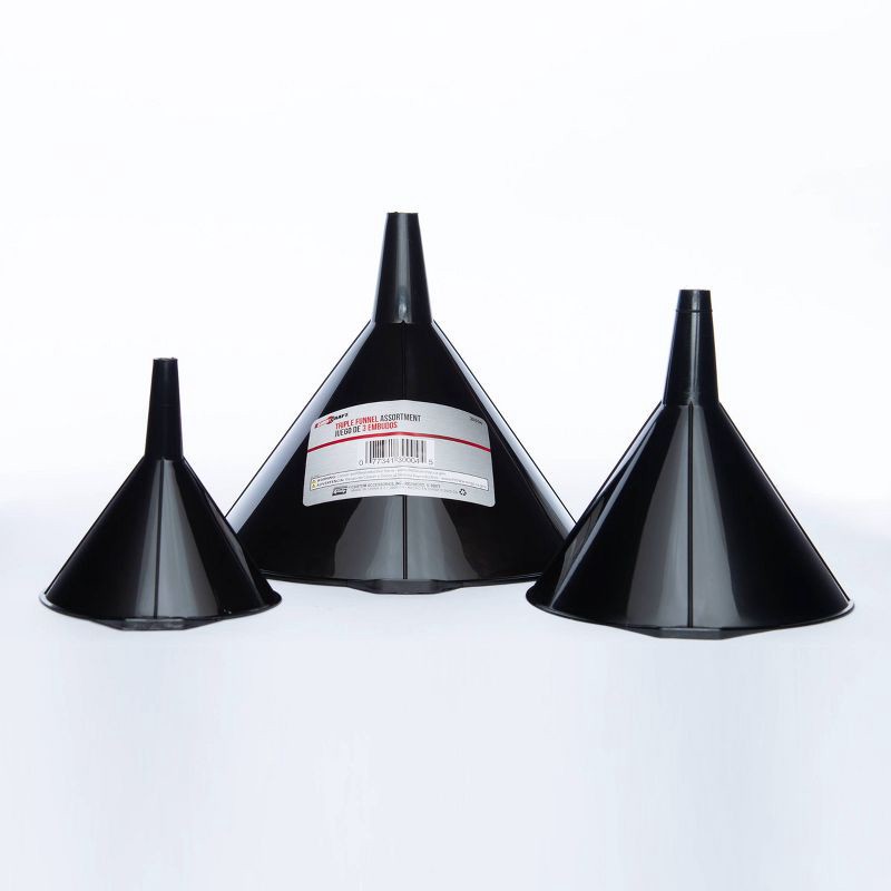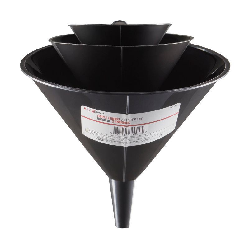 The Shop Craft Triple Funnel Assortment makes a great solution for all your all your fluid transfer needs. Designed with solid, tapered necks, each piece handles the job neatly and with a reduced chan…