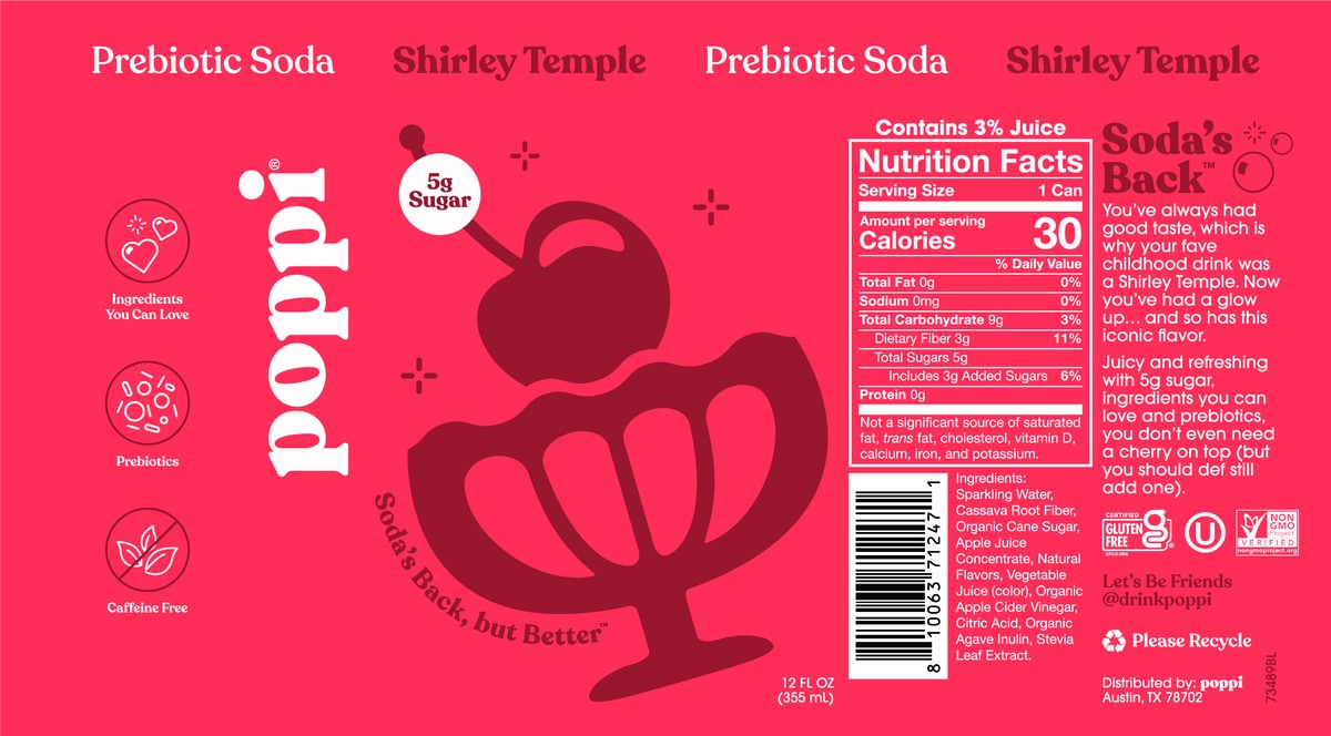 Poppi Shirley Temple Prebiotic Soda