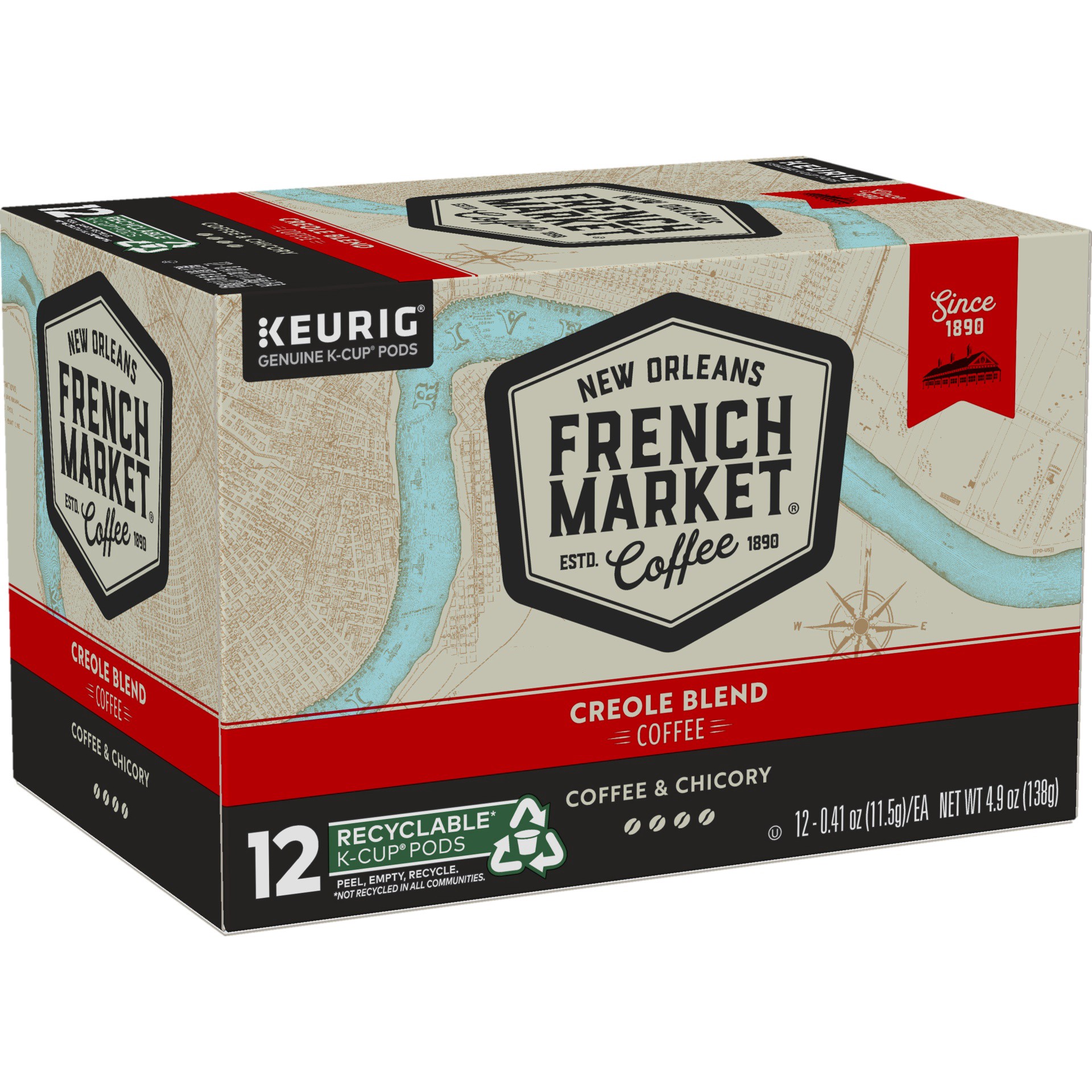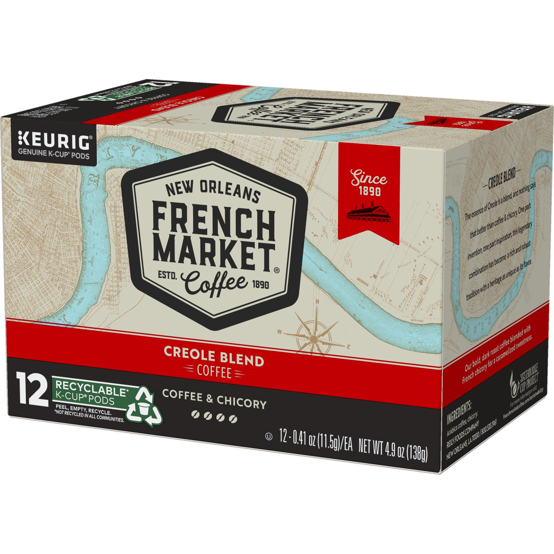 French Market CoffeeCoffee Medium-Dark Roast Creole Blend Coffee and Chicory - 12 x 0.41 oz Coffee Pods
