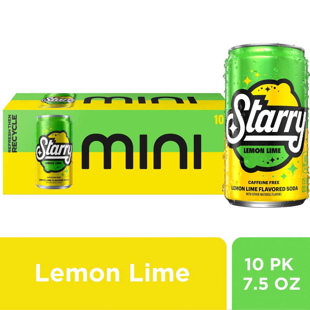 Try the NEW Starry Lemon Lime soda with a crisp, clear burst of lemon lime flavor. This caffeine-free soda is the perfect addition to your everyday routine, whether you have it with a meal or on its o…