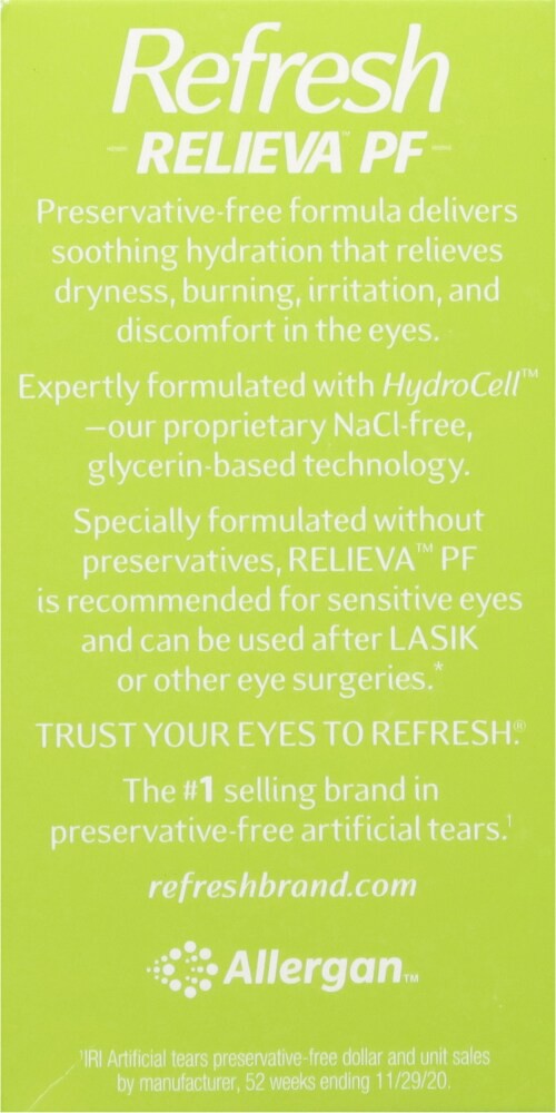 There's relief, and then there's RELIEVA for dry, irritated eyes. REFRESH RELIEVA PF is an innovative preservative-free drop specially formulated not only to relieve discomfort due to dry, irritated e…