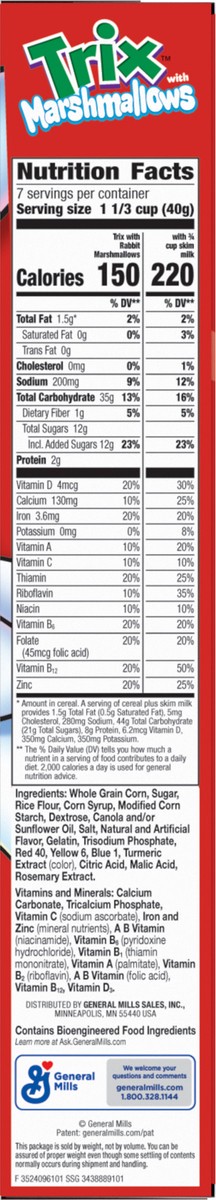 Trix Fruity Breakfast Cereal With Marshmallows, Made With Whole Grain, 9.9 oz