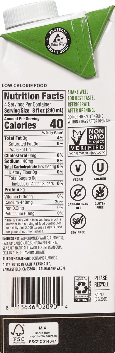 Califia Farms Barista Blend Unsweetened Almond Milk - 32 Fl. Oz.
