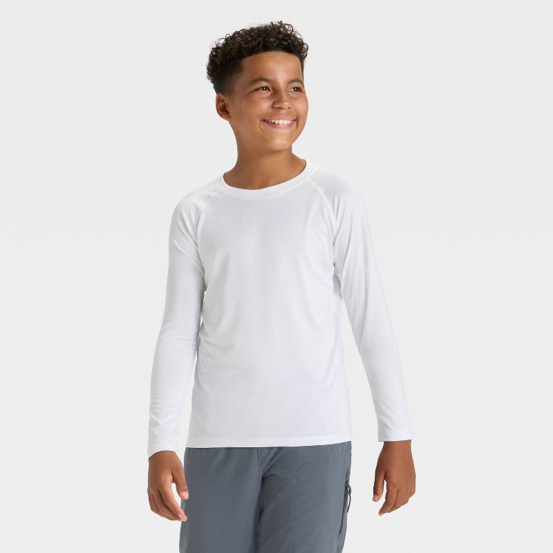 Why we're ALL IN:Solid-color T-shirt crafted from recycled polyester-spandex blend fabric that moves and stretches with them. Fashioned in a crew neckline and boasts flat seams for effortless comfort.…
