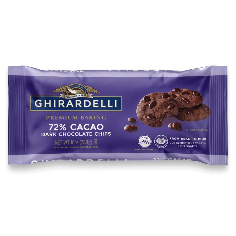 - One (1) 10 oz bag of Ghirardelli 72% Cacao Dark Chocolate Premium Baking Chips Chocolate Chips for Baking